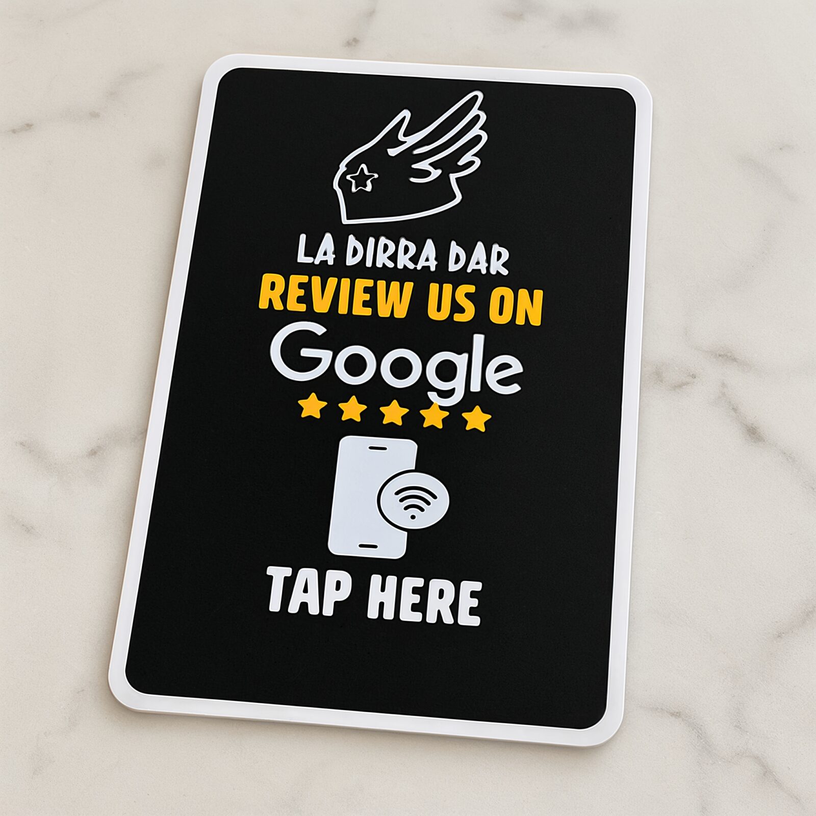 Simply place the plaque on the table with the check, and customers can tap their phone to open your Google review page instantly — no QR codes, no searching, no typing.