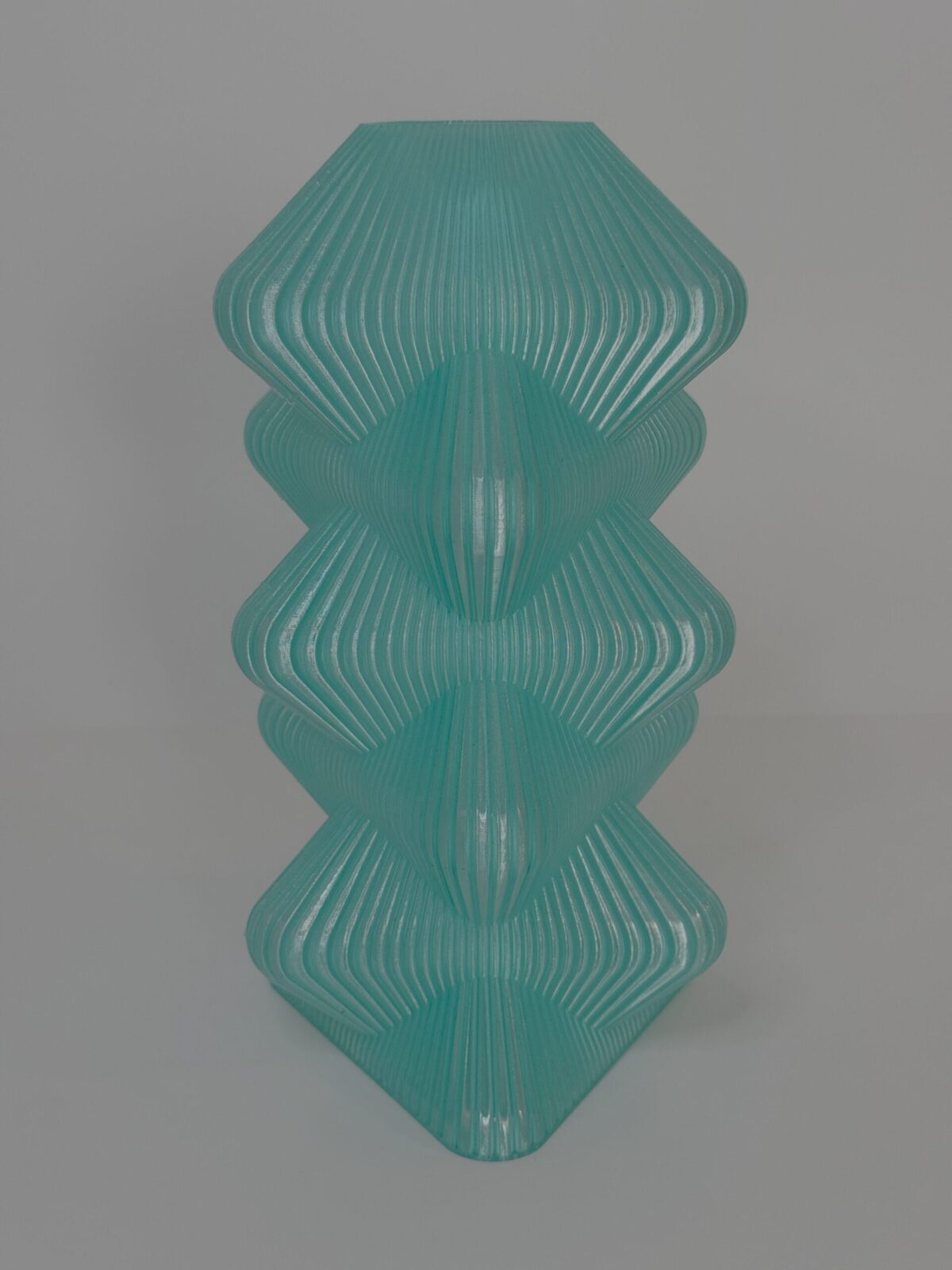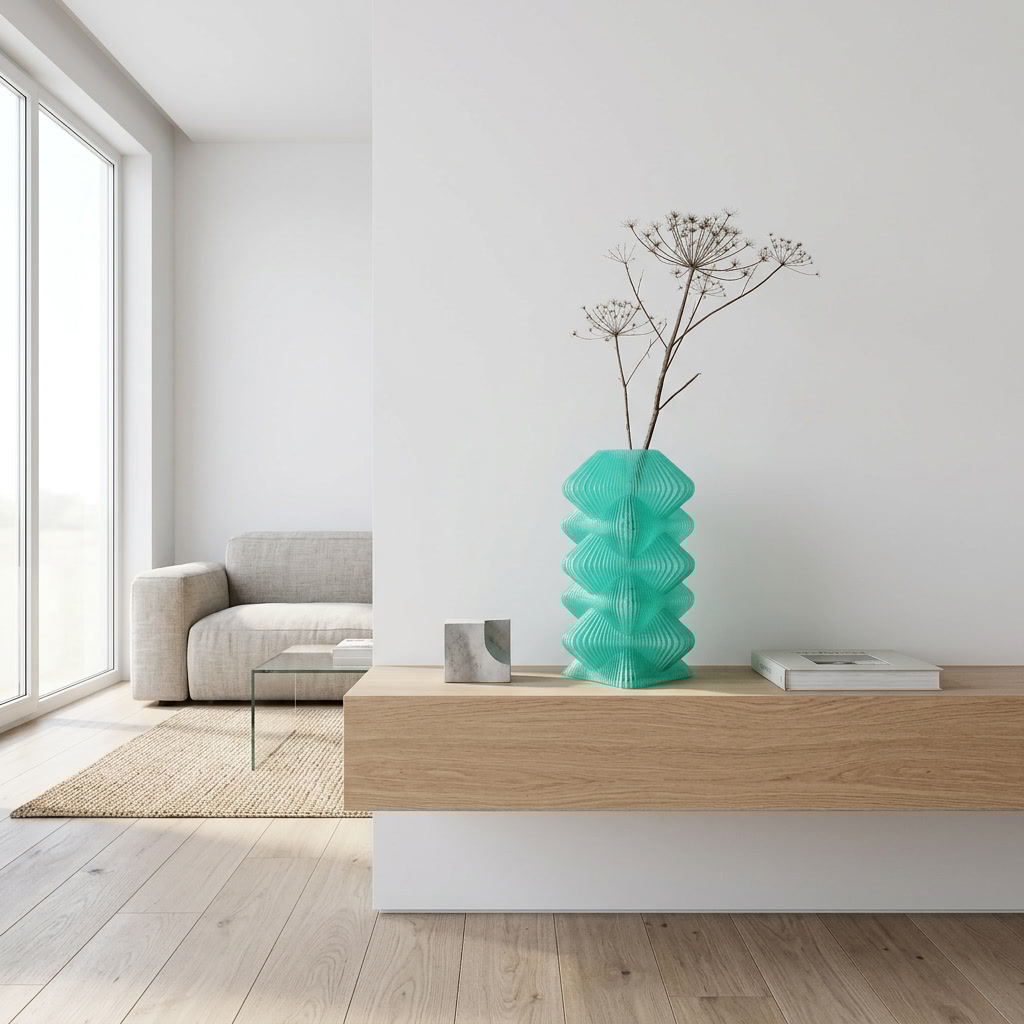 The Tron Sculptural Vase is a modern 3D printed decorative vase with a bold geometric form and layered ribbed texture. Designed to stand out in contemporary interiors, it works beautifully as a sculptural accent or for dried floral arrangements. Available in multiple colors, including custom color options.